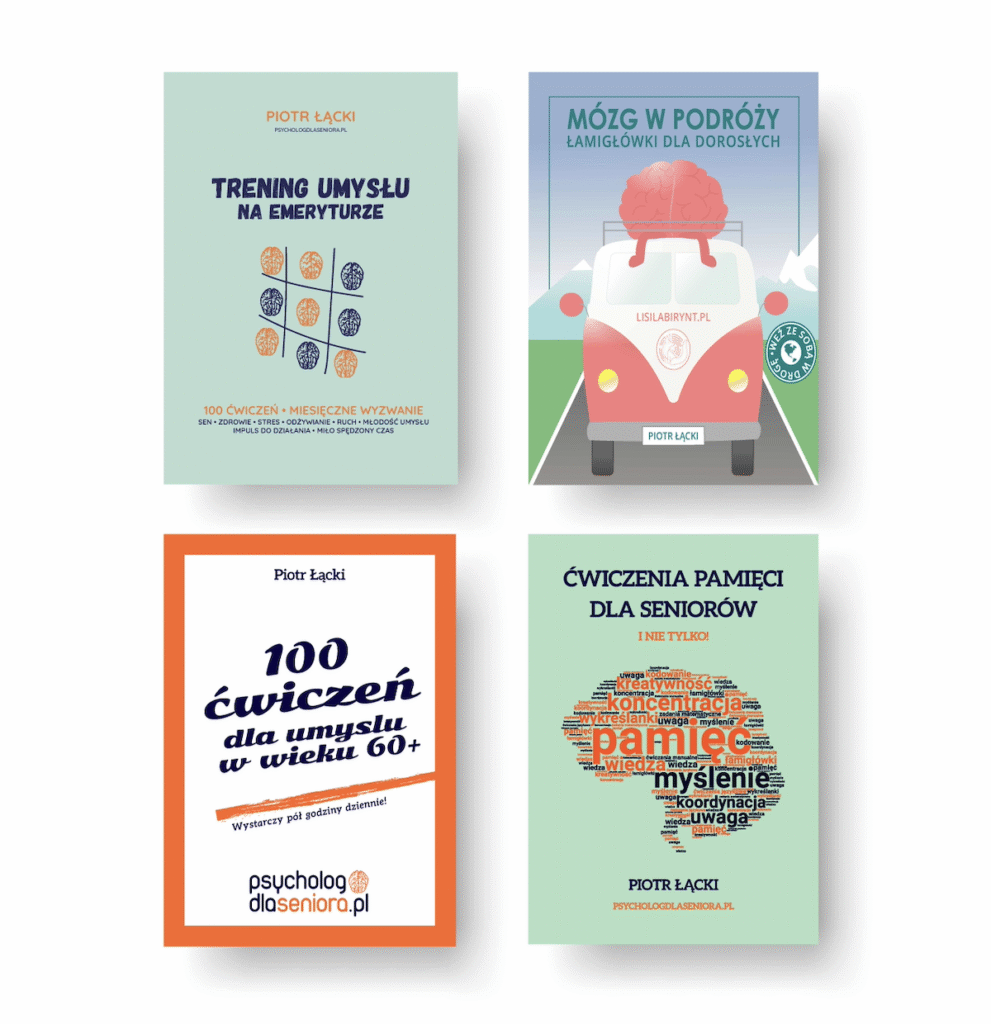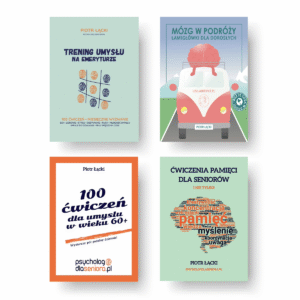 Trening umysłu na emeryturze – najbardziej kompleksowa publikacja psychologa Piotra Łąckiego. Pozwala wszechstronnie zadbać o formę umysłową, inspiruje do działania i pozwala miło spędzić czas.