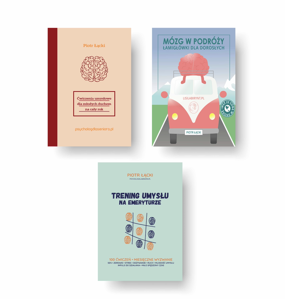Trening umysłu na emeryturze – najbardziej kompleksowa publikacja psychologa Piotra Łąckiego. Pozwala wszechstronnie zadbać o formę umysłową, inspiruje do działania i pozwala miło spędzić czas.